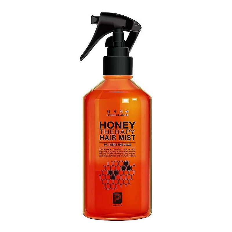 [Daeng Gi Meo Ri] Есенція для зволоження волосся «Медова Терапія» Professional Honey Therapy Hair Mist, 250ml Міст для волосся – незамінний помічник у щоденному догляді для всіх типів волосся. Легка текстура миттєво перетворює зовнішній вигляд локонів, створює природний блиск, полегшує укладання, не обтяжуючи навіть найтонше волосся. Унікальна формула засобу містить високу концентрацію бджолиного маткового молочка, завдяки якому міст миттєво пом'якшує волосся і створює на їх поверхні невидиму плівку, що захищає від негативних зовнішніх впливів. Комплекс із 15 рослинних екстрактів (зелений чай, шовк, женьшень, алое віра тощо) глибоко зволожує та живить волосся, а також зміцнює його структуру по всій довжині. Спрей готує волосся до подальшого сушіння феном або укладання, знижує пухнастість волосся і полегшує його розчісування. СПОСІБ ЗАСТОСУВАННЯ: Струсіть спрей, потім рівномірно розпорошіть невелику кількість на відстані 10 см на вологі або сухе волосся по всій довжині.