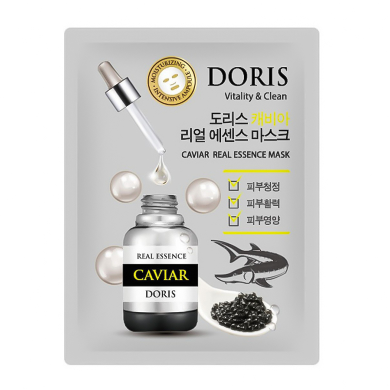 [DORIS] НАБІР Тканинна маска для обличчя ЕКСТРАКТ ІКРИ CAVIAR Real Essence Mask, 10 шт*25 мл