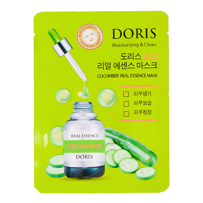 [DORIS] НАБІР Тканинна маска для обличчя ОГІРОК CUCUMBER Real Essence Mask, 10 шт*25 мл