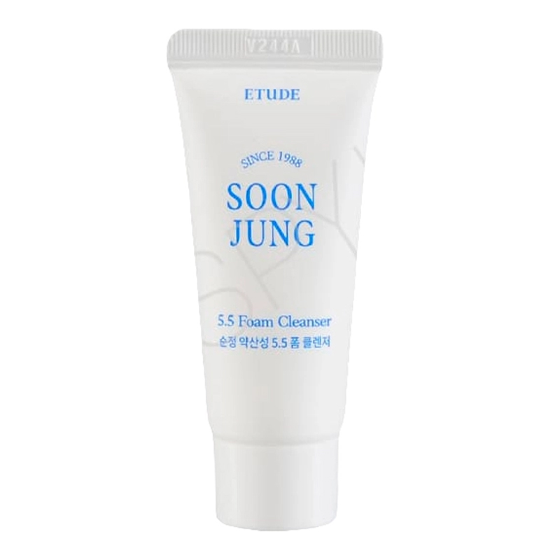 [Etude House] Мініатюра пінки для вмивання ETUDE HOUSE Soonjung 5.5 Foam Cleanser, 20 мл. Слабокислотна пінка з мадекасосидом Soon Jung 5.5 Foam Cleanser для вмивання чутливої, пошкодженої, подразненої шкіри. Дбайливо очищає від усіх видів забруднень, закупорок у порах. Заспокоює запалення, допомагає дермі відновитись після стресу, агресивних косметологічних процедур. Знімає сухість, стягнутість, дискомфорт. Дає протизапальний, ранозагоювальний ефект. Підтримує нормальний рівень вологи у клітинах. Освіжає та тонізує. Оздоровлює та зміцнює шкіру. Підвищує її стійкість до стресів і посилює природні захисні функції. Спосіб застосування: Трохи засобу спінити в долонях, масажувати обличчя близько двох хвилин. Ретельно змити проточною водою. Використовувати під час вмивання вранці та ввечері. Склад: Water / Aqua / Eau, Sodium Cocoyl Isethionate, Glycerin, Coco -Betaine, Potassium Benzoate, Sodium Chloride, Acrylates/C10-30 Alkyl Acrylate Crosspolymer, Citric Acid, Tromethamine, Disodium Edta, Panthenol, Pentylene Glycol, Madecassoside. Дистриб'ютор: www.iconopt.com.ua. Термін придатності див. на упаковці.