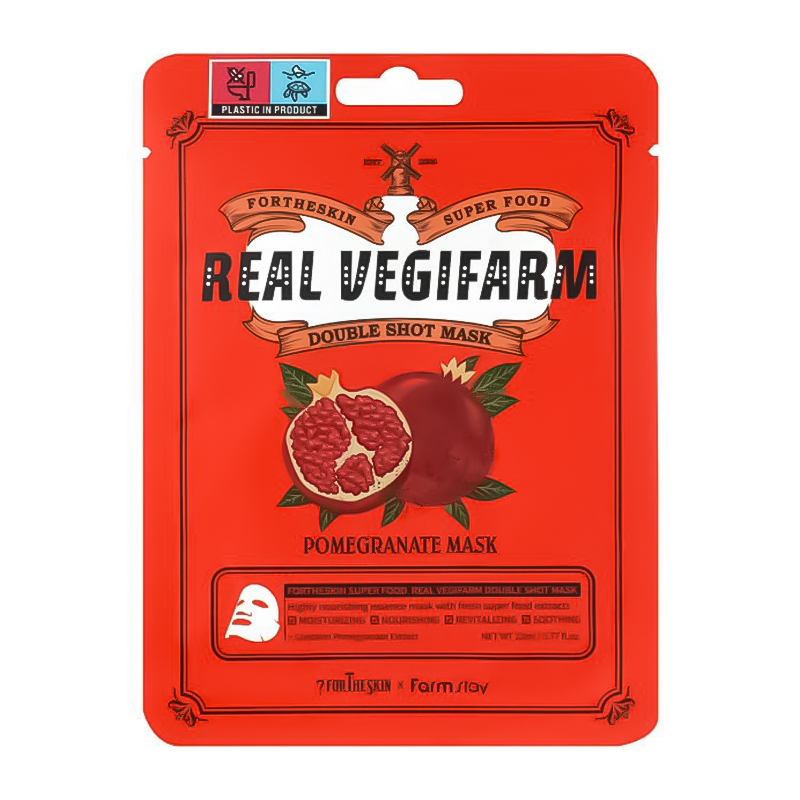 [FORTHESKIN] Тканинна маска для обличчя ГРАНАТ SUPER FOOD REAL VEGIFARM DOUBLE SHOT MASK - Pomegranate, 23 мл