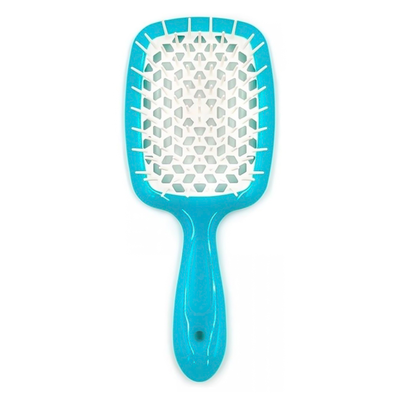 [Janeke] Гребінець SUPER BRUSH бірюзовий з білим. SUPERB SH JANEKE – це якість, перевірена досвідом, адже вже понад 180 років даний італійський бренд випускає гребінці аксесуари для волосся. Superb sh – інноваційна серія гребінців із карбонового волокна. Тільки цей матеріал має властивість ліквідувати статичну електрику. А воно, як відомо, негативно впливає на структуру волосся і сильно її виснажує, витончуючи волосинку. Superb sh термостійка. Завдяки чому відкриває нові обрії для творчих укладок. Важливо, форму з отворами, які нагадують бджолиний вулик і допомагають у швидкому укладання волосся. Переваги унікальної Superb sh: Унікальна пеорація на зубчиках з нейлону не висмикує волосся, а ставиться до нього максимально дбайливо. Волосся висихає за кілька хвилин. Superb sh пройшов гігієнічні тести та довів свою безпеку. Спосіб застосування: Використовуйте гребінець для розчісування волосся. Виробник: GIORGIO JÄNEKE S.r.l., Via Verdi, 920837 Veduggio (MB), Italia.