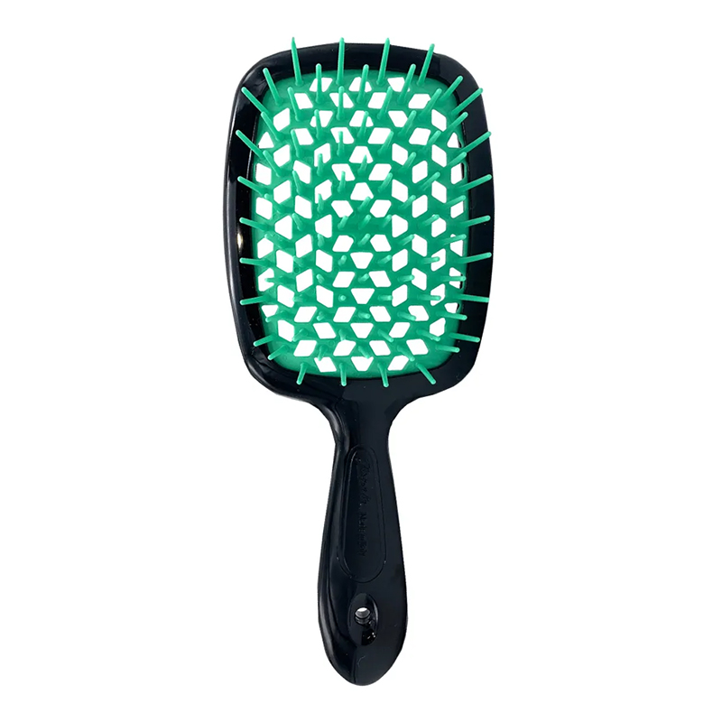 SUPERBRUSH JANEKE - це якість, перевірена досвідом, адже вже понад 180 років цей італійський бренд випускає гребінці аксесуари для волосся. Багато хто з Вас, можливо, здивується, але посічені кінчики, постійна електризація волосся і, як результат, не найкращий вигляд цілком можуть бути від неправильно підібраного гребінця! Superbrush - інноваційна серія гребінців з карбонового волокна. Тільки цей матеріал має властивість ліквідувати статичну електрику. А вона, як відомо, негативно впливає на структуру волосся і сильно її виснажує, стоншуючи волосинку. Superbrush має термостійкість, завдяки чому відкриває нові горизонти для творчих укладок. Важливо відзначити, форму з отворами, які нагадують бджолиний вулик і допомагають у швидкому укладанні волосся. Superbrush має широку колірну палітру, в якій ви обов'язково знайдете свій улюблений колір. Переваги унікальної Superbrush: Унікальна перфорація на зубчиках з нейлону не висмикує волосся, а ставиться до нього максимально дбайливо. Волосся висихає за кілька хвилин. Superbrush пройшов гігієнічні тести і довів свою безпеку. Спосіб застосування: Використовуйте гребінець для розчісування волосся.