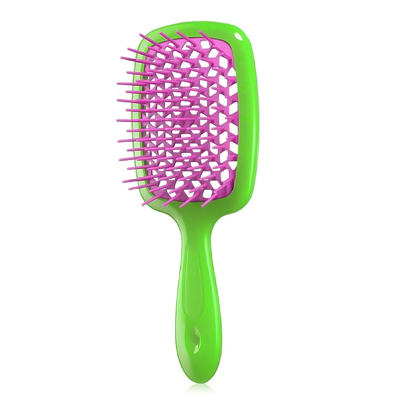 [Janeke] Гребінець SUPER BRUSH зелений з фуксією. SUPERB SH JANEKE – це якість, перевірена досвідом, адже вже понад 180 років даний італійський бренд випускає гребінці аксесуари для волосся. Superb sh – інноваційна серія гребінців із карбонового волокна. Тільки цей матеріал має властивість ліквідувати статичну електрику. А воно, як відомо, негативно впливає на структуру волосся і сильно її виснажує, витончуючи волосинку. Superb sh термостійка. Завдяки чому відкриває нові обрії для творчих укладок. Важливо, форму з отворами, які нагадують бджолиний вулик і допомагають у швидкому укладання волосся. Переваги унікальної Superb sh: Унікальна пеорація на зубчиках з нейлону не висмикує волосся, а ставиться до нього максимально дбайливо. Волосся висихає за кілька хвилин. Superb sh пройшов гігієнічні тести та довів свою безпеку. Спосіб застосування: Використовуйте гребінець для розчісування волосся. Виробник: GIORGIO JÄNEKE S.r.l., Via Verdi, 920837 Veduggio (MB), Italia. Дистриб'ютор: www.iconopt.com.ua. Термін придатності див. на упаковці.