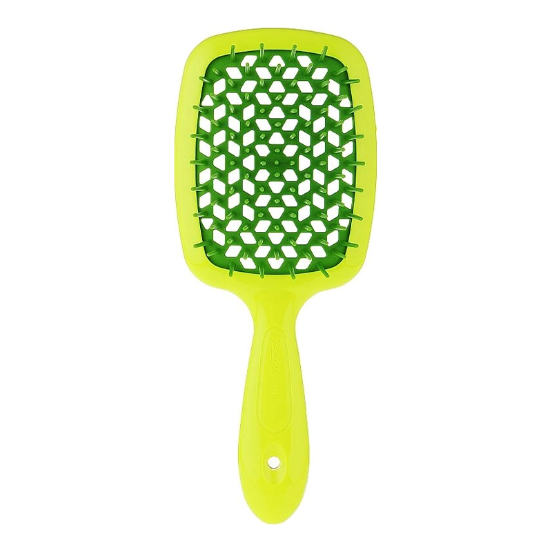 [Janeke] Гребінець SUPER BRUSH жовтий з зеленим. SUPERB SH JANEKE – це якість, перевірена досвідом, адже вже понад 180 років даний італійський бренд випускає гребінці аксесуари для волосся. Superb sh – інноваційна серія гребінців із карбонового волокна. Тільки цей матеріал має властивість ліквідувати статичну електрику. А воно, як відомо, негативно впливає на структуру волосся і сильно її виснажує, витончуючи волосинку. Superb sh термостійка. Завдяки чому відкриває нові обрії для творчих укладок. Важливо, форму з отворами, які нагадують бджолиний вулик і допомагають у швидкому укладання волосся. Переваги унікальної Superb sh: Унікальна пеорація на зубчиках з нейлону не висмикує волосся, а ставиться до нього максимально дбайливо. Волосся висихає за кілька хвилин. Superb sh пройшов гігієнічні тести та довів свою безпеку. Спосіб застосування: Використовуйте гребінець для розчісування волосся. Виробник: GIORGIO JÄNEKE S.r.l., Via Verdi, 920837 Veduggio (MB), Italia. Дистриб'ютор: www.iconopt.com.ua. Термін придатності див. на упаковці.