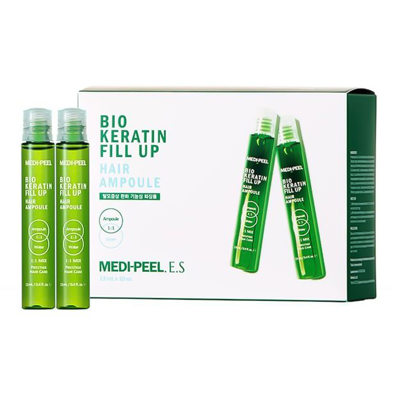 [MEDI-PEEL] Філер для волосся, що зміцнює Medi Peel Bio Keratin Fill Up Hair Ampoule 13 ml. Зміцнюючі філери для волосся мають миттєву і накопичувальну дію. Вже після першого використання помітно покращує та відновлює структуру волосся, ущільнює пасма, пом'якшує, зміцнює, дарує блиск та сяйво. Філлер замінює дію відразу трьох засобів - бальзаму, тоніка та маски. Наповнює волосся та шкіру голови необхідними поживними компонентами, зміцнює кутикулу, запобігає втраті волосся, підтримує оптимальний рівень зволоження, пом'якшує, повертає волоссю шовковистість та блиск. Засіб робить волосся слухняним, запечатує кінчики, що січуться, допомагає боротися з сухістю і ламкістю, а також робить його неймовірно м'яким і гладким. Воно обволікає кожне пасмо від коренів до самих кінчиків, утворюючи захисний бар'єр, який оберігає волосся від передчасного забруднення, ламкості та агресивного впливу зовнішніх факторів. Спосіб застосування: Змішайте філер із водою у пропорціях 1:1. Ретельно перемішайте. Коли засіб загусне до кремової консистенції, нанесіть засіб на добре підсушене рушником волосся і шкіру голови. Приділіть особливу увагу кінчикам та пошкодженим місцям. Через 10-15 хвилин змийте водою. Для посилення ефекту надягніть термошапку або укутайте волосся в пакет/рушник. Склад: Propylene Glycol, Alcohol, Myristyl Alcohol, Behentimonium Chloride, Water, Menthol, Helianthus Annuus (Sunflower) Seed Oil, Salicylic Acid, Panthenol, Butylene Glycol, Glycine Soja (Soybean) Oil, Albumen, Biotin, Sodium Hyaluronate, Camellia Sinensis Leaf Extract, Inula Britannica Flower Extract, Hydrolyzed Collagen, Hydrolyzed Keratin, Hydrolyzed Silk, Lysimachia Foenum-graecum Extract, Cynanchum Atratum Extract, Bixa Orellana Seed Oil, Tocopherol, Lecithin, Steartrimonium Chloride, Cetrimonium Chloride, Isopropyl Alcohol, Cyclopentasiloxane, Fragrance. Виробник: SKINIDEA CO,. LTD. Дистриб'ютор: www.iconopt.com.ua. Термін придатності див. на упаковці.