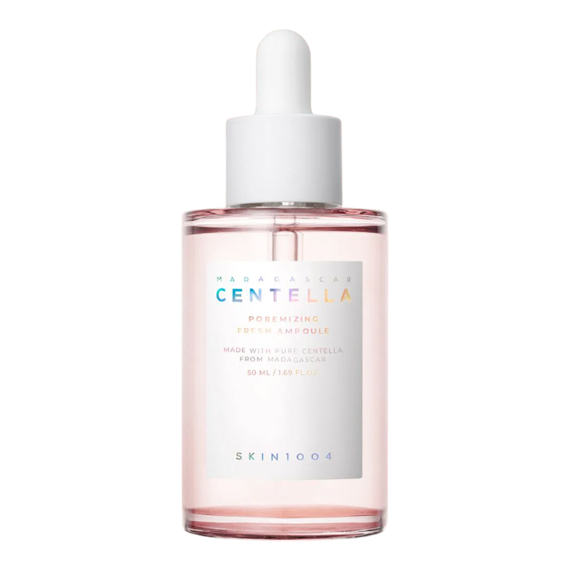 Ампула SKIN1004 Madagascar Centella Poremizing Fresh Ampoule звужує розширені пори, підтягуючи та зміцнюючи шкіру, а також підтримує їхню чистоту, запобігає закупорці пор і появі жирного блиску. Продукт скорочує глибину і ширину пор, зменшує їхню видимість і підтримує чистоту шкіри, а також заспокоює і пом'якшує, розгладжує рельєф, надає еластичність і пружність, запобігає передчасному старінню. Щільна гелева текстура освіжає, прекрасно зволожує і не залишає липкості, нормалізує гідроліпідний баланс. Підходить для всіх типів шкіри з розширеними порами.