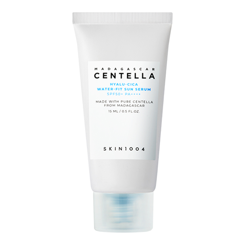 Сонцезахисна сироватка SKIN1004 Madagascar Centella Hyalu-Cica Water-Fit Sun Serum SPF50+ PA++++ заспокоює, освіжає та зволожує шкіру, створюючи невідчутний бар'єр, який захищає від ультрафіолетового UVA- та UVB-випромінювання. Легка текстура сироватки швидко вбирається, не залишає липкості та білих розводів. Засіб запобігає сухості та стягнутості, підтримує пружність і гладкість, підходить для чутливої ​​шкіри. Має зручний дозатор. Головним компонентом є зволожуючий комплекс Hyalu-Cica, що складається з екстракту центели азіатської та гіалуронової кислоти. Hyalu-Cica заповнює нестачу вологи, знімає подразнення та почервоніння, зміцнює природний захисний бар'єр та підтримує здоров'я шкіри.