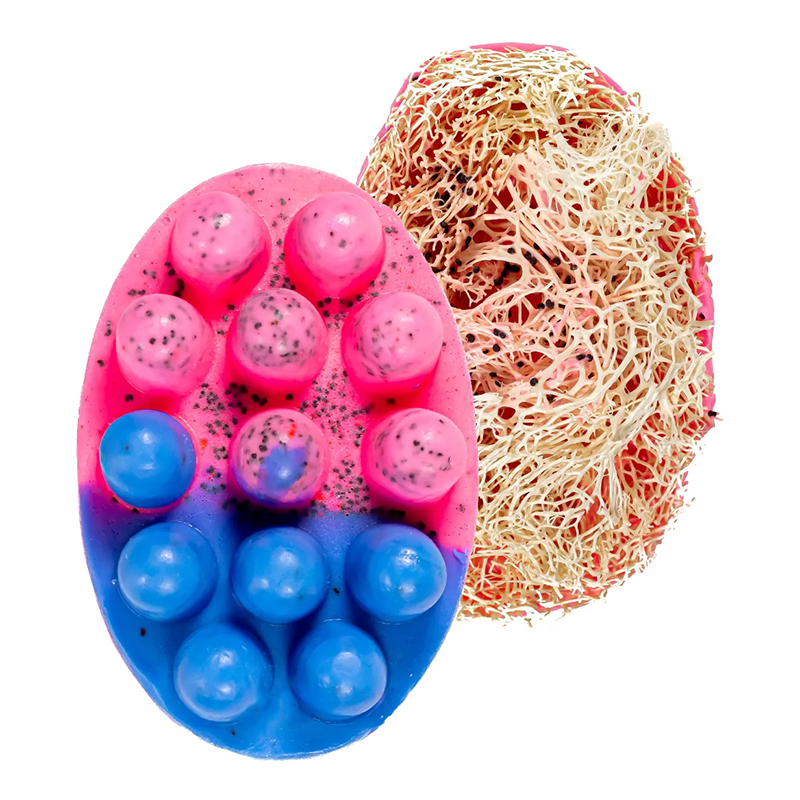 Масажне парфумоване мило завдяки своїй красивій та універсальній формі, має не тільки приємний масаж ефект, але і антицелюлітний. Засіб добре очищає шкіру та одночасно здійснює антицелюлітний масаж. Воно покращує мікроциркуляцію крові та сприяє активізації обмінних процесів у клітинах епідермісу. Має приємний аромат. Формула засобу збагачена цінними маслами, що позитивно впливають на стан шкіри. Завдяки жорсткому масажному та пілінговому ефекту мочалки з люфи активно використовуються в косметології, а також для проведення процедур, пов'язаних з очищенням шкіри в домашніх умовах. Люфа відмінно очищає шкіру від мертвих клітин епітелію, покращує кровообіг, сприяє утворенню колагену. Спосіб застосування: змочити тіло теплою водою та добре намилити його до появи малої піни. Змити теплою водою.