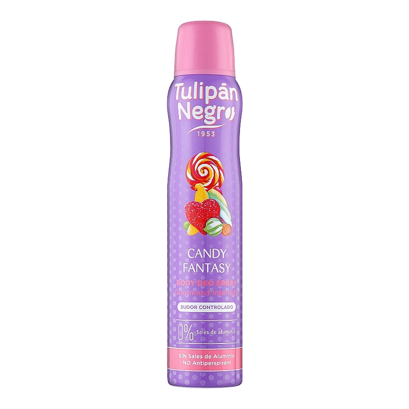 Ігристий аромат цього спрею здатний пробудити Вашу уяву та фантазію, занурити у світ спогадів, повернути у далеке дитинство, хай і на короткий час. Улюблені льодяники, солодка цукрова вата, мармелад .... Від цих солодощів було неможливо відмовитися, від шелестящих обгорток захоплювало дух, а з цукеркою в роті все здавалося набагато красивіше і життя ставало цікавіше. Дезодорант-спрей "Солодкі фантазії" іспанського бренду Tulipan Negro порадує Вас не лише яскравим ароматом, який зберігається на шкірі тривалий час, а й своїм ефективним результатом. Інгредієнти у його складі регулюють діяльність потових залоз, оберігають від виникнення неприємного запаху, не шкодять здоров'ю та не подразнюють шкіру. Якщо Вам сподобався запах продукту, використовуйте його в парі з гелем для душі "Солодкі фантазії". Порадуйте свою внутрішню дитину пустотливим ароматом, а свою шкіру дбайливим захистом.