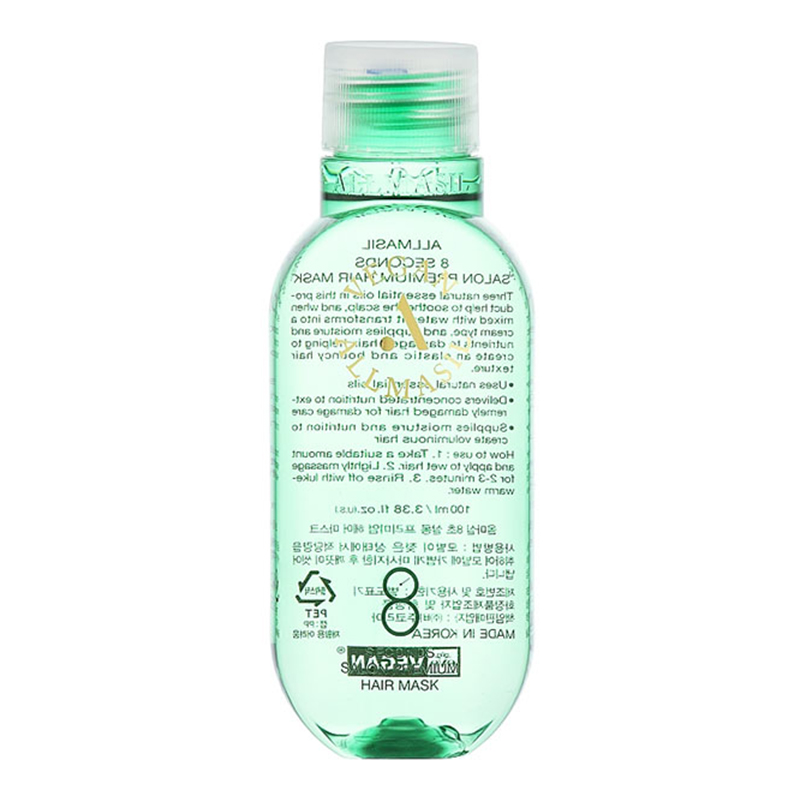 Премиальная маска для волос 8 секунд корейского бренда Allmasil 8 Seconds Salon Premium Hair Mask - это высококонцентрированное средство, которое при смешивании с водой становится кремообразным, благодаря чему мягко обволакивает волосы и придает им эффект салонного ухода. Комплекс натуральных растительных экстрактов, эфирных масел, аминокислот и растительных протеинов, входящих в состав маски, восстанавливают поврежденные волосы, возвращают им упругость, гладкость и насыщенный блеск.