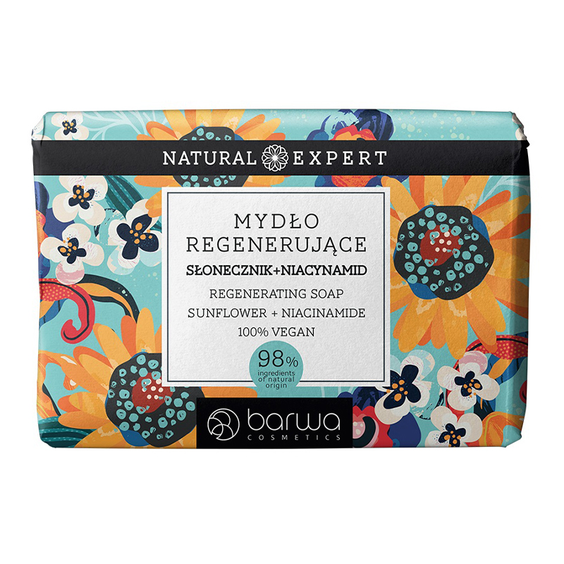 [BARWA COSMETICS] Мыло твердое регенерирующее Подсолнух и Ниацинамид, 100 г Твердое мыло серии Natural Expert Подсолнух и Ниацинамид предназначено для мытья всего тела. Мягко, но эффективно очищает, обеспечивая оптимальный уровень увлажнения сухой кожи. Ниацинамид, глицерин и аллантоин питают, успокаивают кожу, создают на ней защитный слой и обеспечивают ощущение комфорта. Мыло не оставляет следов на раковине и мыльнице. Аромат: Свежий, цветочный. 100% веганский продукт. Способ применения: Намочите мыло и начните намыливать до образования пены. Затем промойте водой. Только для наружного применения. Хранить при температуре от +5С до +25С. Срок годности см. на упаковке. Артикул: 009618