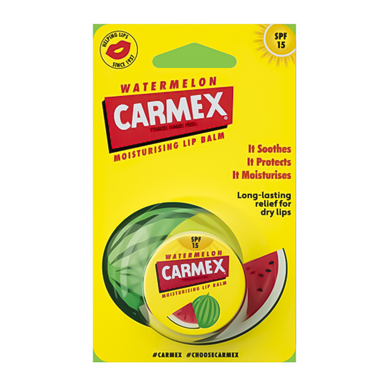 Carmex Lip Balm Water Mellon без парабенов и красителей, деликатно покрывает нежную кожу губ, моментально ее смягчает и разглаживает, восстанавливает ощущение комфорта. Устраняет сухость и шелушения, стимулирует процессы регенерации, способствует быстрому заживлению микротрещин, препятствует потере влаги. Бальзам обеспечивает питательное и увлажняющее действие, защищает от ультрафиолетового излучения, мороза и холодного ветра. Средство имеет приятный аромат, который остается на губах тонкой вуалью. Независимо от сезона, бальзам для губ Lip Balm Water Mellon подарит оптимальную защиту и ощущение комфорта.