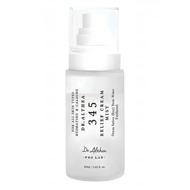 Мист Dr.Althea 345 Relief Cream Mist сочетает функции увлажняющего тоника и лёгкого крема. Мягкая эмульсионная текстура легко распределяется, увлажняет, успокаивает, уменьшает покраснение, Гидролат (60%), экстракт, протеин и аминокислоты риса богаты витаминами группы В и антиоксидантами. Интенсивно увлажняют, предотвращают шелушение и обезвоженность, повышают эластичность кожи, способствуют осветлению тона лица. Пантенол (витамин B5, 10 000 ppm) ускоряет заживление микроповреждений, смягчает и успокаивает, снимает покраснение, улучшает барьерные функции эпидермиса. Подходит для ежедневного использования и в течение дня, когда коже требуется дополнительный уход.