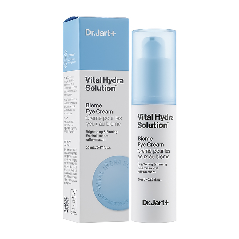 "Увлажняющий крем для кожи вокруг глаз Dr.Jart+ Vital Hydra Solution Biome Eye Cream наполняет кожу влагой и питательными элементами, мгновенно освежает и тонизирует ее, убирает темные круги, эффективно разглаживает морщинки, помогает в восстановлении и укреплении защитного барьера деликатной области вокруг глаз.