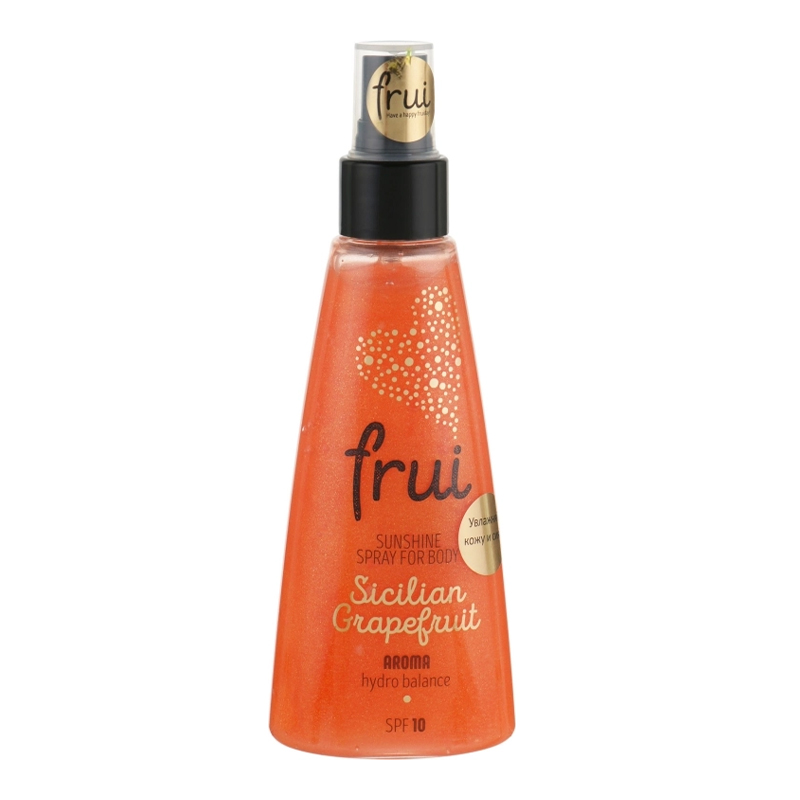 Ваша чувствительная нежная кожа быстро сгорает на солнце, однако увидеть на своем теле легкий бронзовый загар – ваша мечта? Воспользуйтесь сияющим аромаспреем с увлажнением Sunshine Spray For Body Sicilian Grapefruit бренда Frui, который подарит телу непревзойденное мерцание и легкий оттенок загара! Бьюти-продукт с легким шимером и невероятно мягкой текстурой быстро впитывается кожей, хорошо увлажняет ее и оставляет приятный аромат цитрусовых.