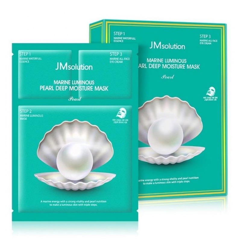 Трёхшаговый увлажняющий набор с жемчугом JMsolution Marine Luminous Pearl Deep Moisture Mask. Комплекс направлен на глубокое увлажнение и восстановление эпидермиса, придает коже естественное сияние и наполняет её полезными морскими минералами и микроэлементами. Набор рассчитан на одно применение, в его состав входит: эссенция, крем для век и тканевая маска.