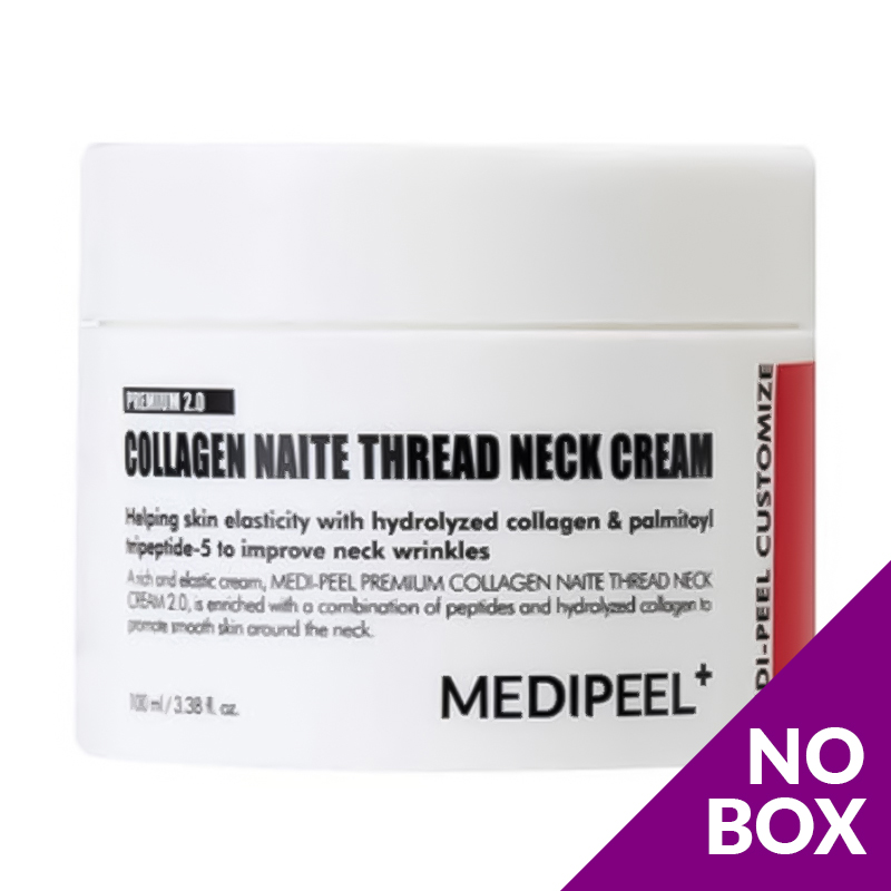 MEDI-PEEL Крем для шеи и декольте Premium Collagen Naite Thread Neck Cream 2.0, 100 мл Подтягивающий крем для шеи с пептидным комплексом и коллагеном Medi-Peel Premium Collagen Naite Thread Neck Cream 2.0 – усовершенствованная версия знаменитого крема для шеи от Medi-Peel, содержащая двойную концентрацию пептидов и коллагена, оказывает ярко выраженное действие лифтинга, разглаживает и уменьшает глубину морщин, помогает бороться с кожными заломами и кольцами Венеры. Крем содержит мощнейший пептидный комплекс направленный на глубокое омоложение и укрепление кожи. Разглаживает и уменьшает глубину морщин, замедляет старение кожи и даёт эффект лифтинга. Интенсивно увлажняет и удерживает влагу в эпидермисе, устраняет сухость, делает кожу мягкой и гладкой. Пептиды активизируют процесс регенерации и обновления клеток эпидермиса, активизируют обмен веществ и повышают иммунитет. Восстанавливают структуру волокон коллагена и эластина и стимулируют их синтез. Воздействуют на мышцы лица, оказывая успокаивающий эффект, в результате которого морщины разглаживаются.