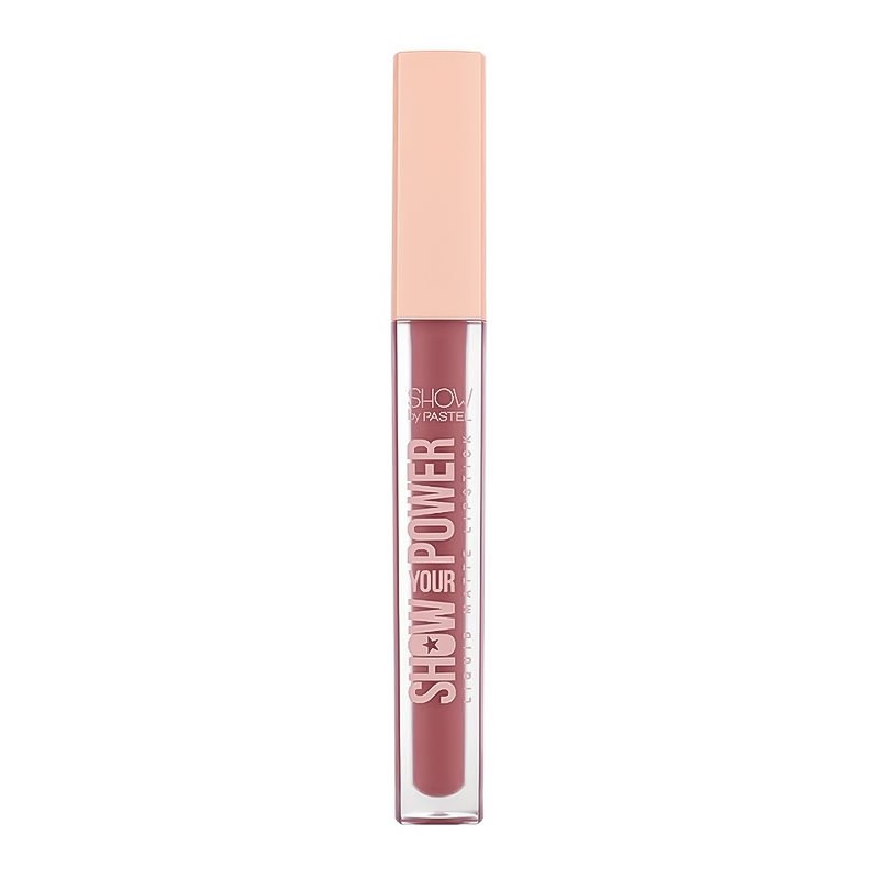 Жидкая матовая помада Show By Pastel – Show Your Power держится до 8 часов. Она устойчива к размазыванию и поцелую благодаря функции No Transfer. Легкая неотсушивающая текстура и специальное легкое нанесение одним движением очерчивают контур губ. 4,1г. Веганский. Не содержит глютена. Без парабенов. Дерматологически проверено. Продолжительность 8 часов. Сертификат халяль. Артикул 380617
