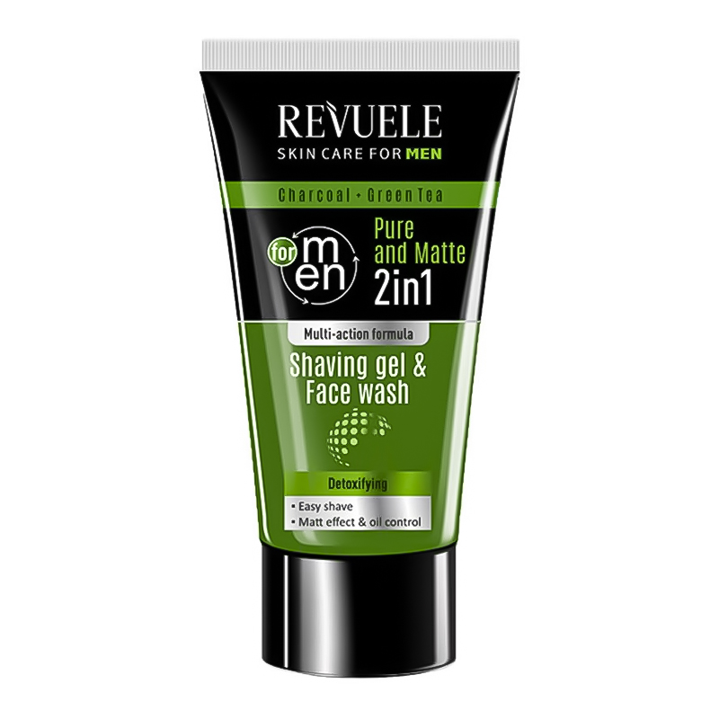 [REVUELE] Гель для бритья и средство для умывания 2в1 MEN CARE с углем и зеленым чаем, 180 мл