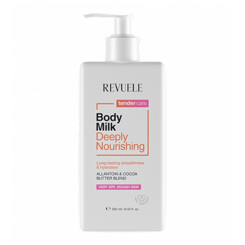 Молочко для тела Revuele Tender Care Deeply Nourishing Body Milk сочетает в себе доказанную питательную и смягчающую силу аллантоина и масла какао. Нежная текстура средства быстро впитывается, не вызывая ощущения жирности, обеспечивает оптимальный комфорт кожи и является отличным ежедневным средством по уходу за кожей. Тщательно подобранный состав активных ингредиентов эффективно повышает эластичность, упругость и гладкость кожи, делает ее увлажненной и бархатистой.