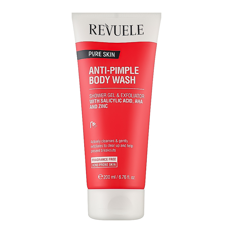 REVUELE ANTI-PIMPLE BODY WASH – ежедневный гель для душа, предназначенный для жирной и комбинированной кожи, склонной к акне.