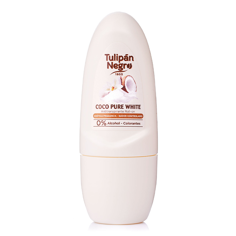 Tulipán Negro Roll on Coco Pure White – дезодорант-антиперспирант, который увлажняет кожу и обеспечивает ощущение свежести на протяжении всего дня. С экзотическим и освежающим ароматом.